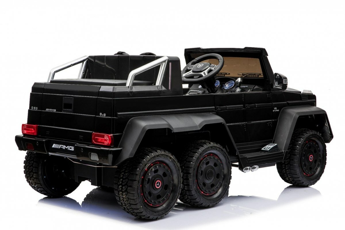 Duży, efektownie wyglądający, z napędem na 6 kół oraz z możliwością jazdy dziecka z rodzicem.